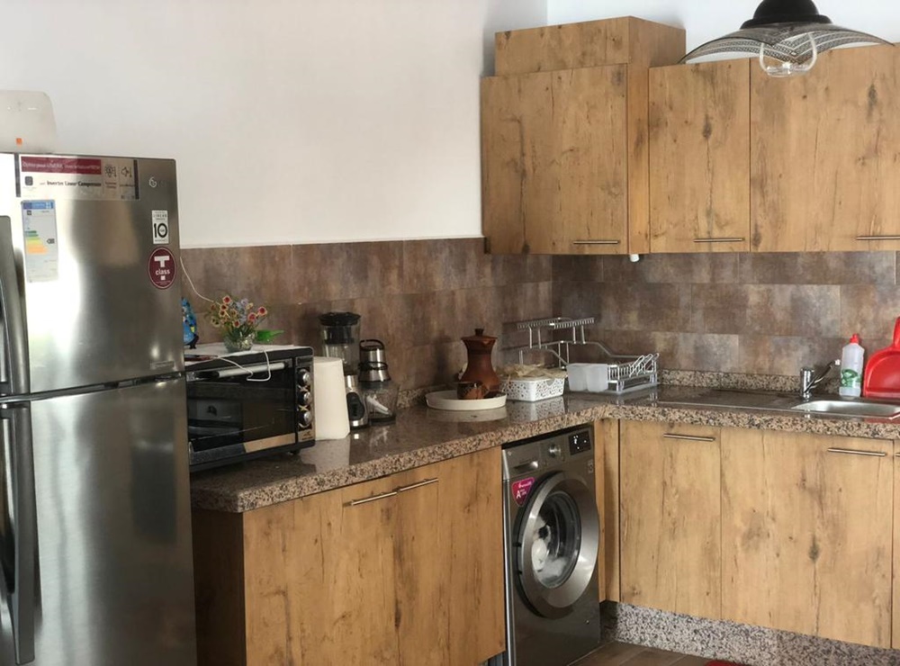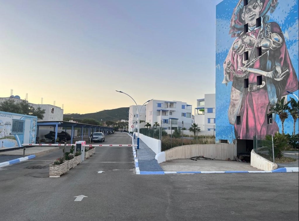 Appartement situé à résidence mirador golf 2 à Station balnéaire touristique cabo negro il se compose de deux chambres un chambre parentale avec un grand lits pour deux personnes , un placard , et un chambre pour les enfants équipée de deux lits simple, un placard , un salle de bain équipée de sanitaire céramique , un salon moderne de trois canapé très confortable , tv , un sala manger de table et4 chaises , cuisine American équipée du équipements nécessaire comme :